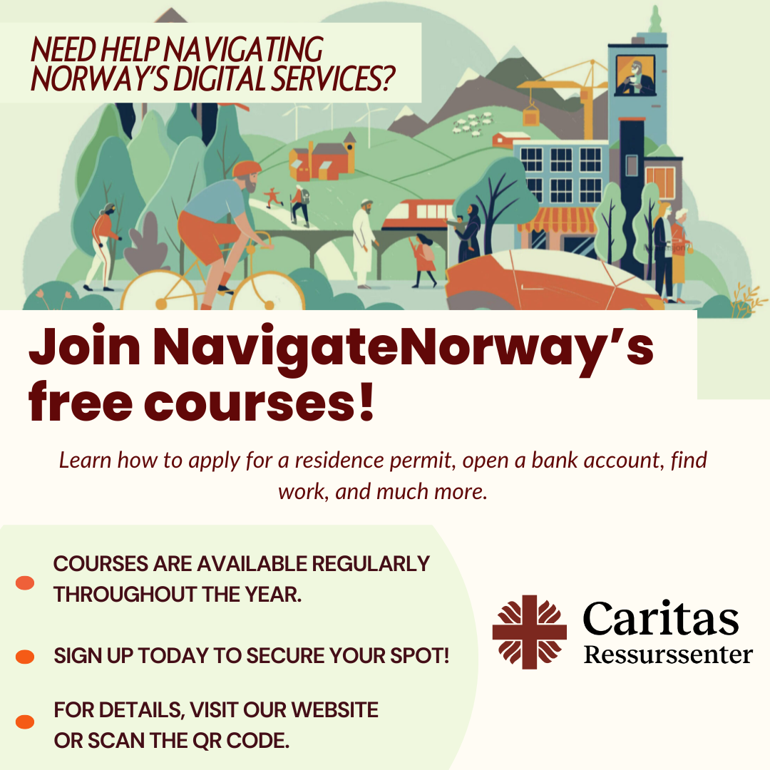 NavigateNorway 2026 NavigateNorway 2026 Question Title * 1. Kontaktinformasjon - Contact Information Navn - First Name * Etternavn - Last Name E-post - Email * Telefon - Phone Number * Question Title * 2. Hvilket språk kan du delta på? - Which language can you participate in? Jeg kan delta på norsk moduler- I can participate in Norwegian modules Jeg kan delta på engelsk moduler - I can participate in English modules Jeg kan delta på moduler på begge språk - I can participate in modules in both languages Question Title * 3. Velg kurs, du kan velge flere alternativer - Select courses, you can choose multiple options Welfare and Support Services in Norway – NAV, 23.02.202, 10:00 PM – ENGLISH Intro modul - Your guide to life in Norway, 24.02.202, 13:30 AM - ENGLISH Your guide to personal finances – Guest lecture by Melissa Christie, 02.03.2026, 13:00 – ENGLISH Jeg kan ikke delta på disse datoene eller tidspunkt - I can't attend on these dates or at this time Question Title * 4. Nasjonalitet (hvor er passet ditt fra?) - Nationality (Where is your passport from?) Question Title * 5. Fødeland - Country of Birth Question Title * 6. Alder - Age Under 18 år - Under 18 years old 18 - 30 år - 18 - 30 years old 31 - 40 år - 31 - 40 years old 41 -50 år - 41 - 50 years old 51 - 60 år - 51 - 60 years old Over 60 år - Over 60 years old Question Title * 7. Kjønn - Gender Kvinne - Woman Mann - Man Ikke binær - Non-binary Question Title * 8. Hva er det høyeste nivået du har gått på skole? - What is the highest level of education you have attended? Ingen - None Ikke fullført grunnskole - Not completed primary school Grunnskole - Primary school Videregående (eller tilsvarende) - Secondary school (or equivalent) Fagskole (eller tilsvarende) - Technical school (or equivalent) Universitet/høyskole - University/College Ukjent - Unknown Question Title * 9. Hvor har du hørt om NavigateNorway? - Where did you hear about NavigateNorway? Bekjente og familie - Acquaintances or family Plakater/Brosjyrer - Posters/Brochures Informasjon fra stand - Information from stands Sosiale medier - Social media Internett - Internet Besøkende av Caritas Ressurssenter - Visitors to Caritas Resource Center Offentlige kontorer - Public offices Andre organisasjoner - Other organizations Radiokanaler, minoritetsmedia etc - Radio stations, minority media, etc. Menigheter, kirker, moskeer eller andre religiøse fellesskap - Congregations, churches, mosques, or other religious communities Annet (vennligst spesifiser) - Other (please specify) Question Title * 10. Er du frivillig hos Caritas Ressurssenter Oslo? - Are you a volunteer at Caritas Resource Center Oslo? Ja - Yes Nei - No Question Title * 11. Jeg samtykker til at Caritas Norge lagrer og behandler mine personopplysninger i en maks periode på 2 år, med det formål å sende meg relevant informasjon, samt kurs og seminarer. Jeg er klar over at jeg kan kontakte Caritas Norge når som helst for å be om at mine opplysninger blir slettet. I consent to Caritas Norway storing and processing my personal data for a maximum period of 2 years for the purpose of sending me relevant information, as well as courses and seminars. I am aware that I can contact Caritas Norway at any time to request the deletion of my information. Ja - Yes Nei - No Question Title * 12. Annen kommentar - Other comments Ferdig